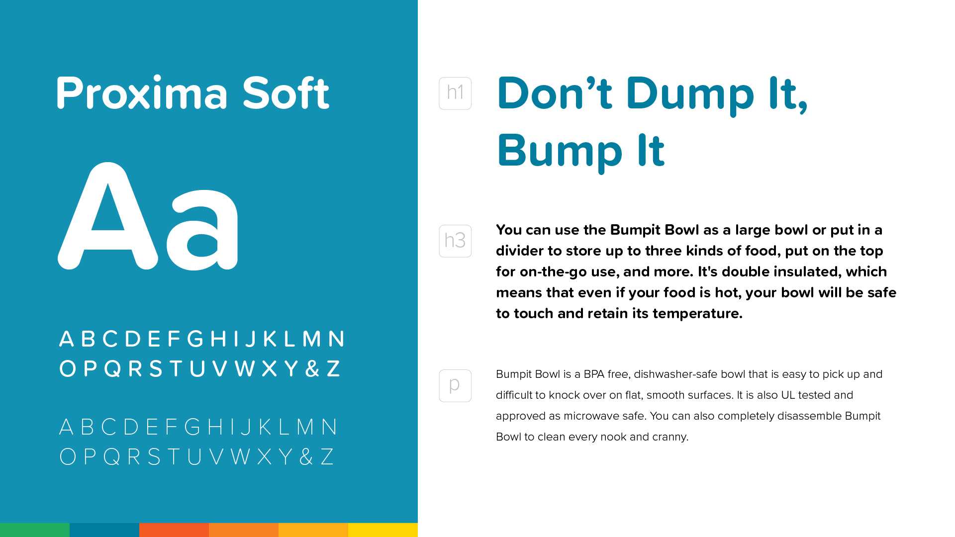 My vision was to create a logo that would evolve overtime to accommadate a growing product line based on the usefulness of the core technology. What resulted was the essential mark, Bumpit followed by the secondary Bowl tagline.